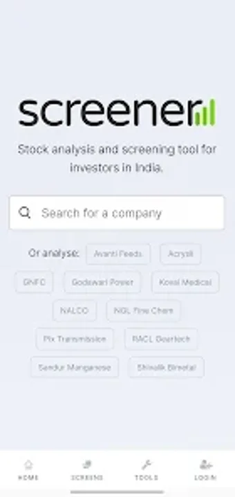 Screener, разработанный screener.in, является бесплатным приложением для Android, которое предоставляет финансовые данные о котируемых компаниях Индии. Приложение разработано для помощи пользователям в поиске и анализе новых идей по акциям, предоставляя обзор любой котируемой компании всего за несколько минут. Screener позволяет пользователям запускать запросы на 10-15 лет финансовых данных и отслеживать объявления и другие регуляторные документы, все в одном месте.